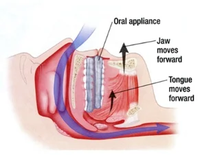 Worn only during sleep, an oral appliance fits like a sports mouth guard or an orthodontic retainer. It supports the jaw in a forward position to help maintain an open upper airway. Research shows that oral appliance therapy is an effective treatment option for snoring and obstructive sleep apnea.